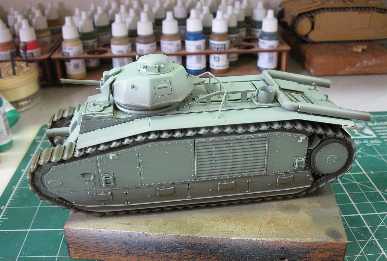 For the Char B1bis, I'll build the unique FANTASQUE] n° 251. The decals will be made by myself, in my Laserjet. The two girls with primer...
