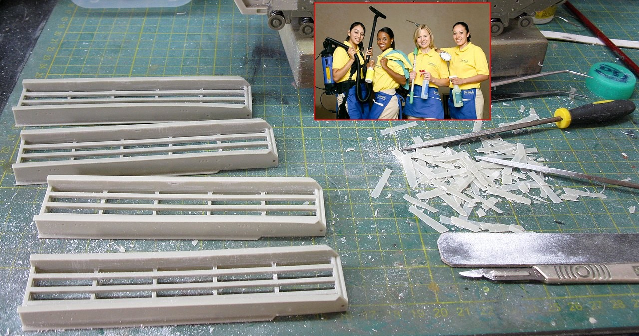 Now, let's take care of the Mk.II Italian Pattern version of the Churchill ARK. Let's build the American M1 type ramps. It all starts with the cleaning team, to remove the resin membranes between the ramp beams. A meticulous job, which must be very well done...